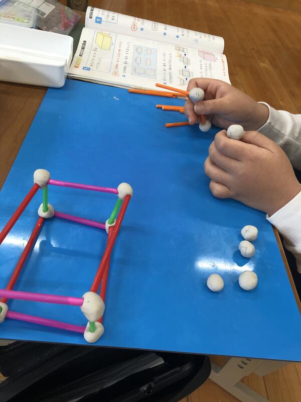 ねん土とひご(ストロー)を使って はこの形をつくることを通して、