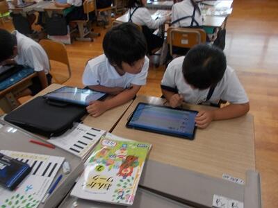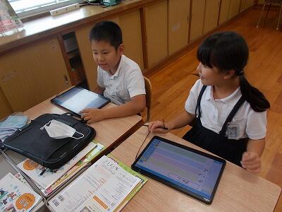 きょうは、グループで話し合ったことを タブレットに入力しました。