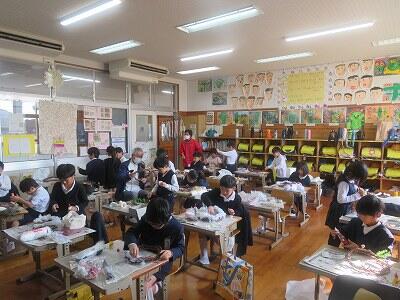 きょうは、いもほりでとれた さつまいものつるで「クリスマスリース」を つくりました