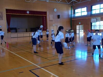 丸くなって、ボールをつなぐ練習では、中学生がたくさんフォローをしてくれました。