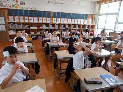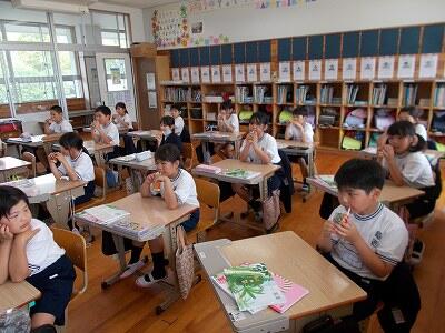 子どもたちが楽しみにしている「100%みかんジュース」の時間です