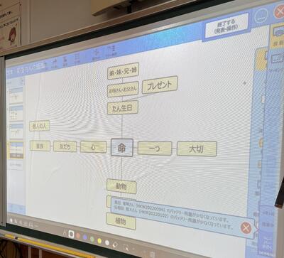 まずは 発表ノートのマッピングを使って 「いのち」から思い浮かぶことを つないでいきました