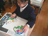 みんな思い思いに殻のデザインを考え、そこから生まれるものをかいてみました!テーマは、花、動物、季節、宇宙などなどたくさんあってどれもすてきな作品になっていました☺