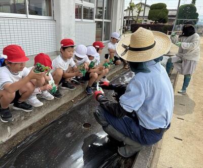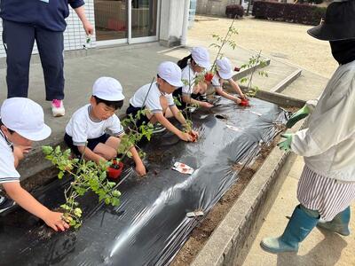 植え方の説明を聞いて、大きくなっておいしく食べれるようにと心を込めて植えていました!困ったときには助けてもらいながら、無事に終えることができ、今日の放課後からさっそく水やりも始めました。これから、みんなでお世話を頑張っていきます☺
