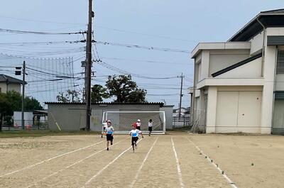2年生になって初めての外での体育で、50m走をしました。みんなゴールを目指して、一生懸命に走ることができました。また、走る順番を待っているときや、走り終わった後には、走っている友達に対して「○○くんがんばれー!」や