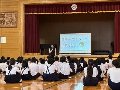 自分と友だちのちがいを認め合える竜西っ子を目指していこうという話があり、実際に自分の得意なことを紹介(自己紹介)したり、友田だちのすごいところや得意なことを紹介(他己紹介)したりしてみました。そんな時間のみんなの顔は自然に笑顔!!!そんな雰囲気を大事にして人権月間も取り組んでいきたいですね。