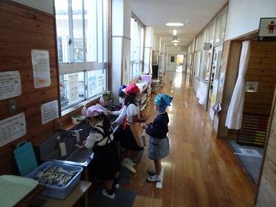 今日の集会は、放送広報委員会が、日ごろの放送の内容をクイズ形式でみんなに考えてもらっていました。聞きながら答えを考えて、それぞれの学級で盛り上がっているようでした。3時間目になると何やら1年生が、エプロン姿になって一生懸命手を”ゴシゴシ”洗っておりました。何か楽しいことがあったようですね~。またどこかで紹介がホームページに載るかもです。