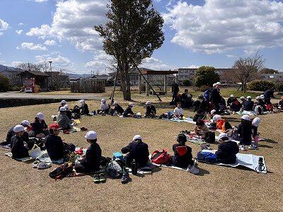 良い天気に恵まれ、お別れ遠足に行ってきました。風が強くて少し大変な時もありましたが、楽しい時間をたくさん過ごすことが出来ました。たてわり班遊び、お弁当、みんなで仲よく過ごせました。