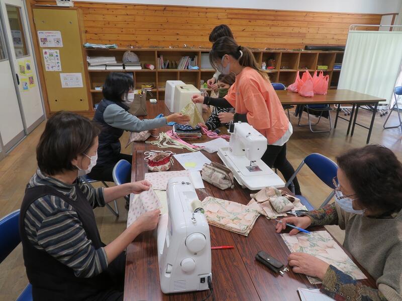 出来上がった巾着袋は、12月11日(土)の持久走大会閉会式の後、1~4年生の児童にCS委員さん、母親委員さんから児童に手渡されました。