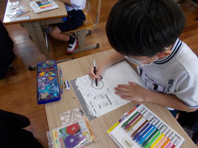 まず、あさがおのたねを じっくり観察して スケッチしました。
