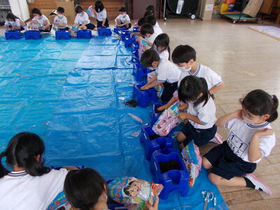 生活科で あさがおの たねまきを しました。