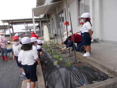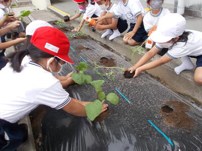 1・2年生合同で 野菜の苗植えをしました。