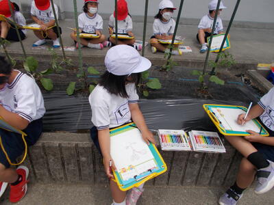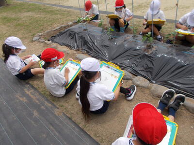 じつぶつをしっかり見て スケッチしています。