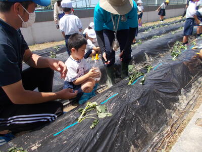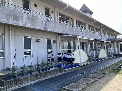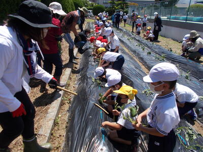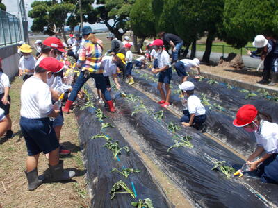 地域学校協働活動本部のみなさん、保護者のみなさんのご協力のおかげで 今年もなえうえが できました。