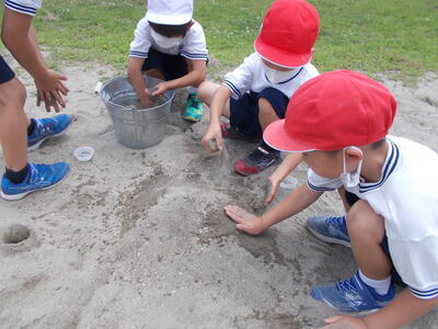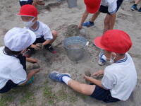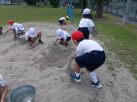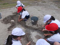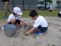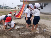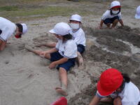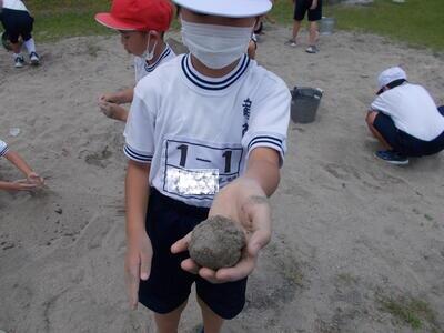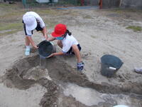 図工の時間に、すなばへ行って すなやつちに さわって いろいろなかたちを つくりました。