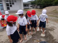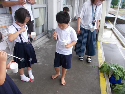 はだしって きもちいぃ~といって み~んな はだしになって活動していた1年生でした