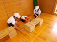 1年生は6年生と一緒に新体力テストに 参加しました。
