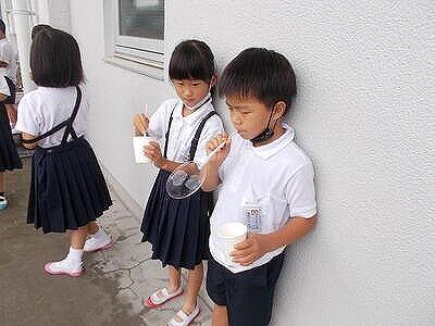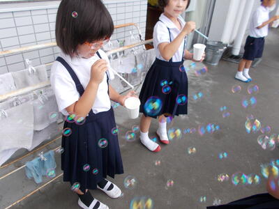 1年生がつくったしゃぼんだまが 2年生の教室までおじゃましたようですね