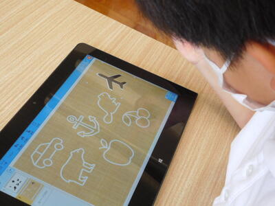 ななせんせいと タブレットの 学習をしました。