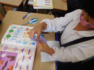 ほうそうしつまえの ハロウィンのかざりも もりもり 作っていましたね音楽