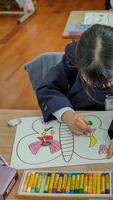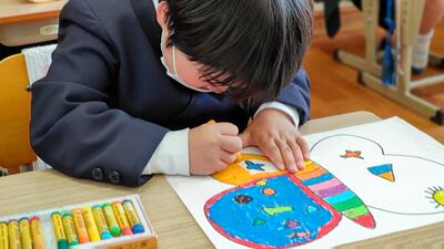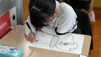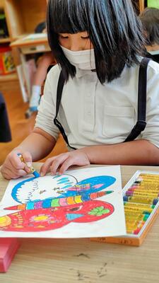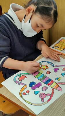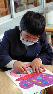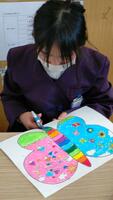 6年生との 思い出を 思い出しながら ちょうに いろを のせていきました
