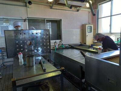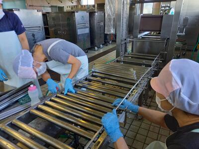 給食のない夏休み。給食センターでは、普段はできない調理機械の整備や洗浄、調理場内外の大掃除を行っています。