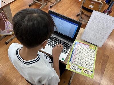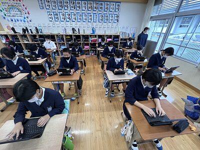 今日は6年生の教室にお邪魔してみましたが、静かな雰囲気の中、タイピングするキーの音だけが、教室に響き合っていました。みんなで一緒に練習する中で、互いに刺激し合い、またそれぞれのタイピング力が伸びればいいなと思っています。今度の検定は2週間後です!