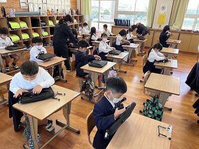 しっかり使い方を学習した後、使用を開始しました。一番手は4年生、そして2年生。3年生は見学旅行があったので、明日しっかり学習して持ち帰りをします。ここでは2・4年生の写真を載せます。