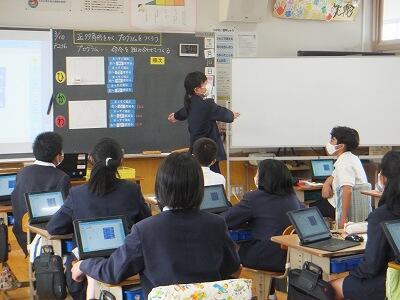 5年生の算数の最後の単元でプログラミングを行いました。内容は正多角形をかくプログラミング。小学校のプログラミング学習の代表的な例として挙げられている内容でもあります。最初、正方形のをかくプログラムをみんなでやったあと、正三角形をかくプログラムをかくにはどうなるかを考えました。