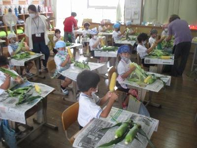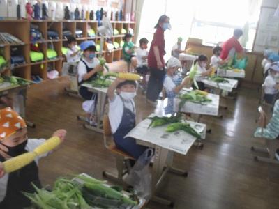 給食に出されるとうもろこしの皮むきを2年生が一生懸命がんばってくれました。
