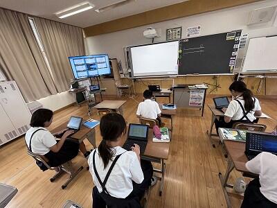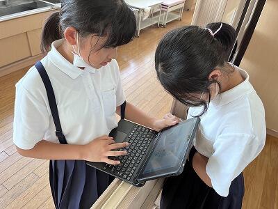 授業での活用以外でも、いろいろな所でタブレットを使った子どもたちの活動はあちこちで見られます。委員会では各委員会でオンラインツールであるTeamsでチームを作成、連絡をしあったり、いろいろな作成物を共同で作業したりしています。その中では大人も仕事に使うアプリを子供たちも使いこなし、いろいろな取組をしています。
