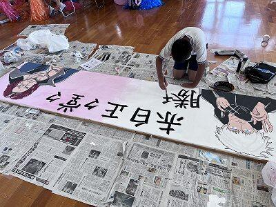 なかなかの出来上がりです。かかわった子供たちも出来栄えに大満足のようでした。飾りつけもして、あとは運動会で掲げるばかりです!みんな頑張りました。運動会当日こちらもしっかり見て下さい!