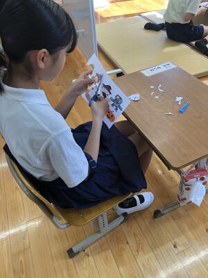 いちごちゃんの まわりに かざる イラストを ちょきちょきして