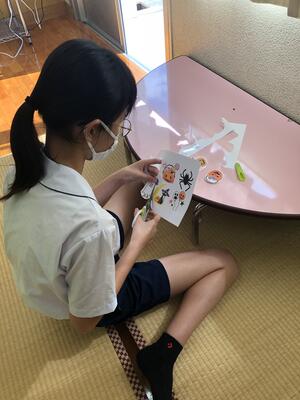 あいさつを がんばって いちごちゃんのまわりを ハロウィンのかざりで にぎやかにしてくださいねっ