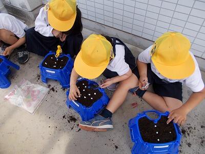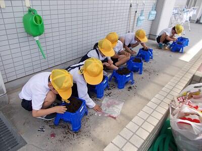みんなていねいに、土を入れたり肥料を入れたりして、がんばっていました