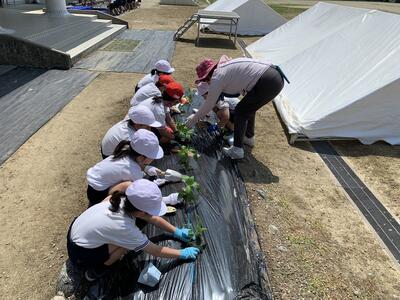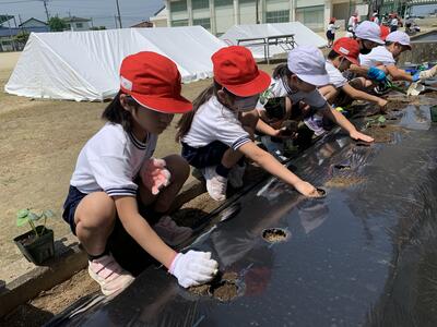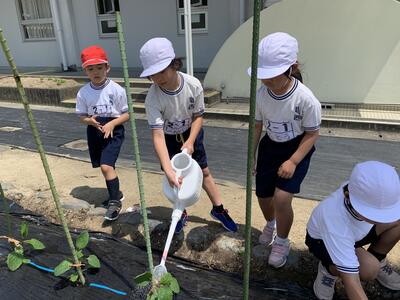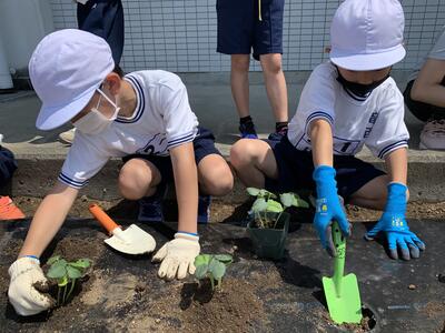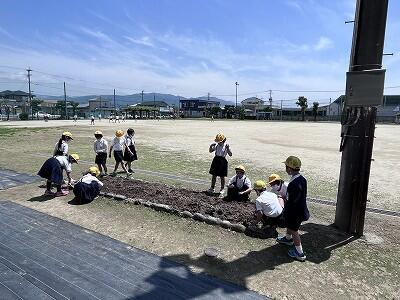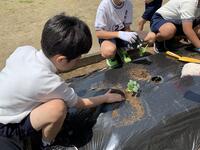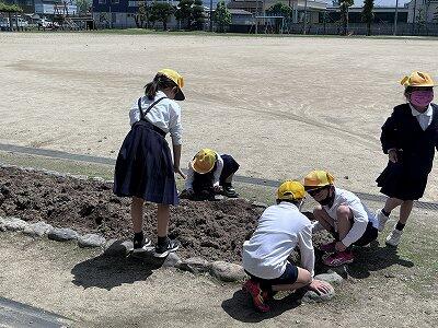 今日の昼休みは2年生がゾロゾロと運動場横の学級園に集まって、何やらゴソゴソやっていました。