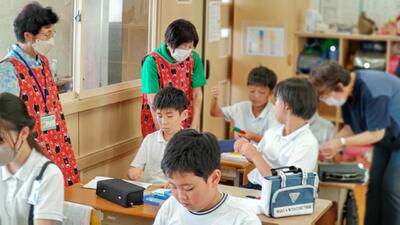 今日の2時間目に、今年度最後の水泳の学習を行いました。今日実施したのは、着衣泳で、水着だけの時と服を着たときの状態の違いを体感した後、水に浮く動作、道具を使った浮き方、溺れている人へのサポートの仕方などを確認しました。万が一溺れたときに実践できる方法を伝えていますので、ご家庭でも話題にされてみてください。