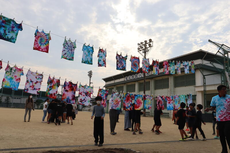自分の好きな染め方や色を選んでオリジナルの「タイダイ染め」Tシャツが出来上がっていました。