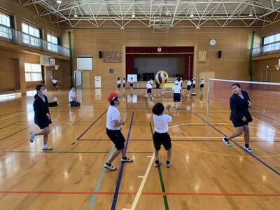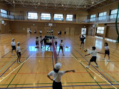 3時間目に体育館に行くと、5年生が体育でバレーをしていました