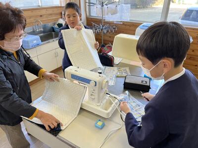 扱いにも慣れ、サクサクと縫い進めていました。縫うのが不安な子どもたちも、下鹿島婦人会や