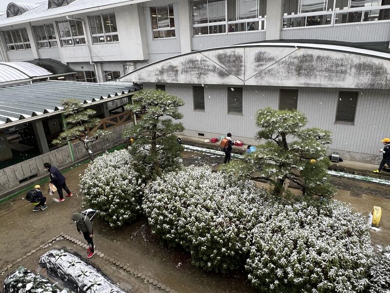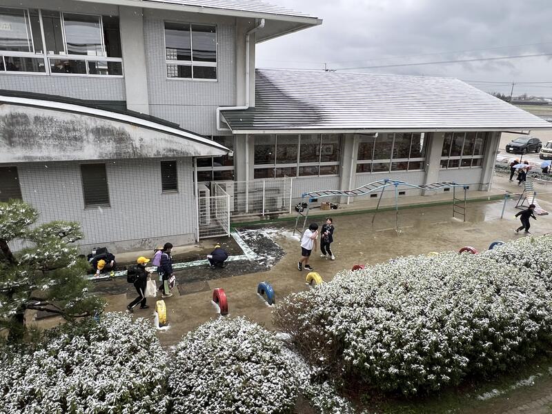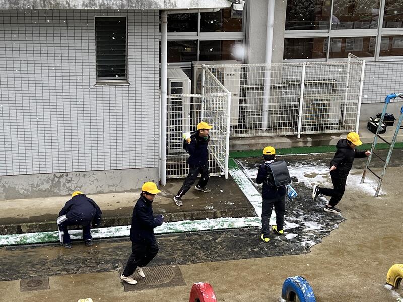 雪の中無邪気に遊ぶ5年生たちです。