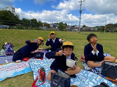 広い外で食べるご飯はいつもとは変わり、もっと美味しく食べることができました