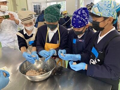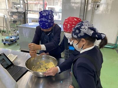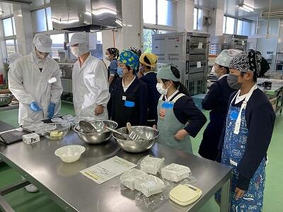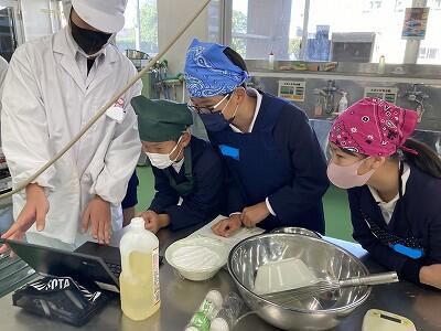 先月20日(水)に八代農業高校へ行き、食品科学科の生徒さんに米粉でできるお菓子づくりを教えていただきました