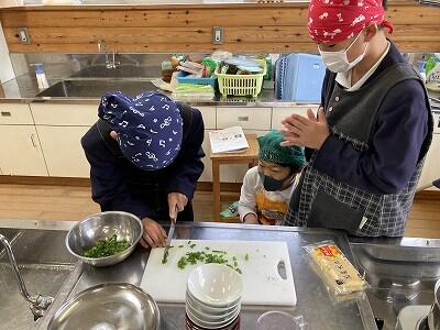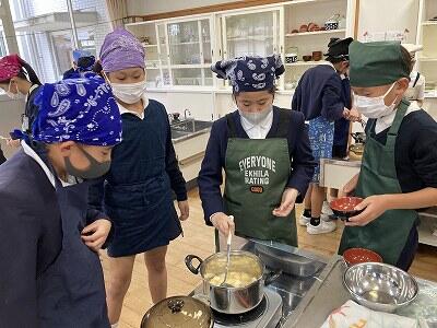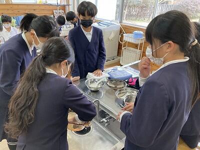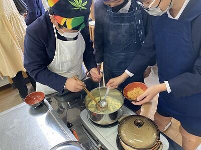 今回は、ご飯とみそ汁で、グループでみそ汁の具材を考えて調理しました