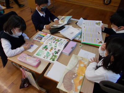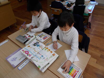 こちらは 国語の学習 お店屋さんごっこの準備をしています。