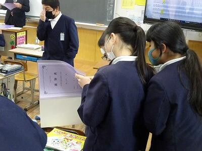 12月24日終業式 5年生の通知表をもらった時の様子です。