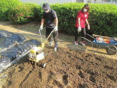 今日は暑さもぐんぐん増して、汗ばむ一日でしたね。運動場の遊具で遊ぶ子供たちの向こうにきれいな青空が広がっていました。・・・そして放課後は先生たちも頑張っていましたよ。学級園に野菜などを植えるために、耕し作業です。多くの学年で野菜などを植える計画も進んでいるようですね。5年生の田植えも近いようです。