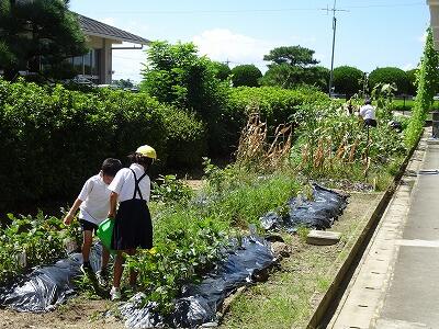 2学期が再開して3日目、感染予防と熱中症対策のため、運動場で思い切り遊ぶ姿はみられませんが、子供たちもそういう我慢もしつつ、教室などを中心に休み時間を過ごしています。今日は、校内を回っていると、1学期学校で植えた野菜のお世話をしたり、掃除も自分たちからしっかり頑張ったり、してくれている姿を見つけました。