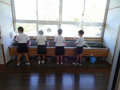2学期の2週目です。今日は朝から暑かったですね。熱中症対策とコロナ対策と気をつけながら、子供たちも過ごしています。水道で手を洗う時も、みんなで一斉に並ぶようなことなく、お互いに声をかけて、距離をとってやってくれています。