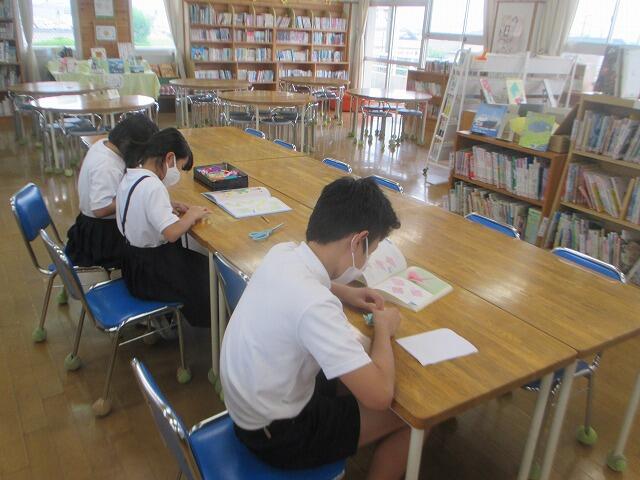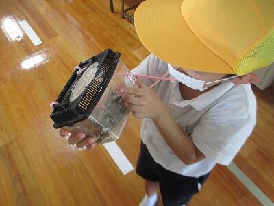 もう一つの写真は、朝の様子ではありませんが、2年生が夏休みに作ってきた工作の作品をじーっと眺めながら、4年生が楽しそうに会話をしていました。コロナ禍の中、学年のこえての交流もなかなかできませんが、いろいろな形でつながりは持っていきたいものです。